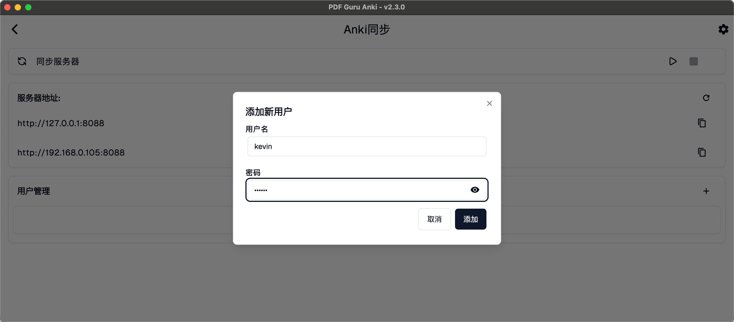 2. 登录时要使用在PDF Guru Anki中创建的用户名和密码登录,而不是Ankiweb上注册的账户登录。